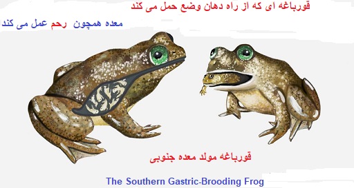 توضیح مدیریت سایت-پیراسته فر:کشف گونه ای از قورباغه که بچه های خود را در شکم پرورش می دهد، دنیای علم را حیرت زده کرد. هنگامی که قورباغه ماده بنام«Rheobatrachus silus» در سال ۱۹۷۳ در جنوب شرقی «کوئینزلند» استرالیا پیدا شد، مشاهده شد که او از طریق دهان خود جوان زنده به دنیا می آورد!