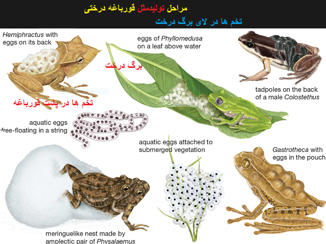 همه ی قورباغه ها از طریق جنسی تولید مثل می کنند و تخم می گذارند.