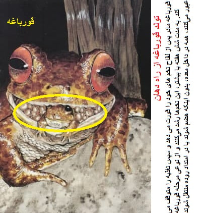 صحنه عجیب این بود که هنگام خروج نوزادان دردوفشاری که به قورباغه مادرمی آمد "عین زایمان"اورا به جست وخیزوامی داشت،تاحدبال بال زدن