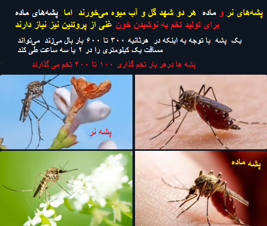 پشه ماده در هر بار گزش ۵ میکرو لیتر خون می مکد. (یک میکرو لیتر معادل یک میلیونم لیتر است)
