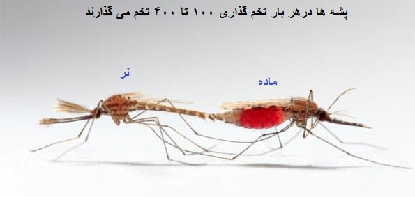 پشه ها درهر بار تخم گذاری ۱۰۰ تا ۴۰۰ تخم می گذارند.