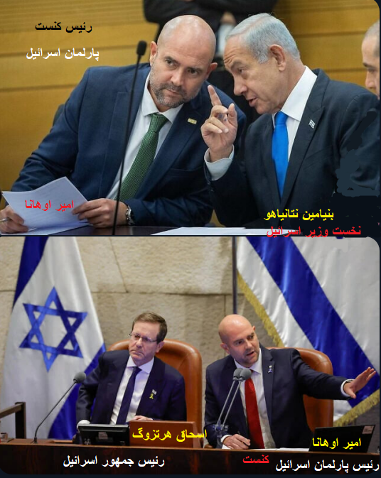 «اسحاق هرتزوگ»(رئیس جمهور اسرائیل)،«بنیامین نتانیاهو(نخست وزیر اسرائیل) و«تزاکی هانگبی»(مشاور امنیت ملی نخست وزیر و رئیس شورای امنیت ملی اسرائیل)