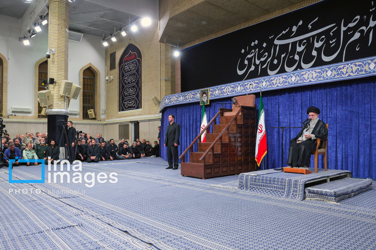 حضرت آیتالله خامنهای در بخش نخست سخنانشان، امام هشتم را ولینعمت همه عالم وجود بهخصوص ایرانیان خواندند و با تسلیت شهادت امام رئوف در بیان تأثیر برجسته سفر آن امام هُمام به خراسان، گفتند: مکتب اهل بیت که بعد از شهادت سیدالشهدا (ع) منزوی و مظلوم بود، در پرتو نتایج آن سفر از انزوا خارج شد و شیعیان روحیهای یافتند که آن روحیه توانست شیعه را در تاریخ حفظ کند و پیروان مکتب اهل بیت را هر روز گسترش دهد.