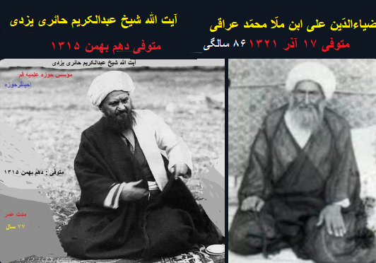 «آیت الله شیخ عبدالکریم حائری یزدی» ۱۳ سال در سامرا بودند وبا هجرت «آیت الله فشارکی» به نجف هجرت کردند ،حدود ۱۶ سال درنجف اقامت داشتندبعدازآن تا سال ۱۳۳۲ در کربلا اقامت نمودند.