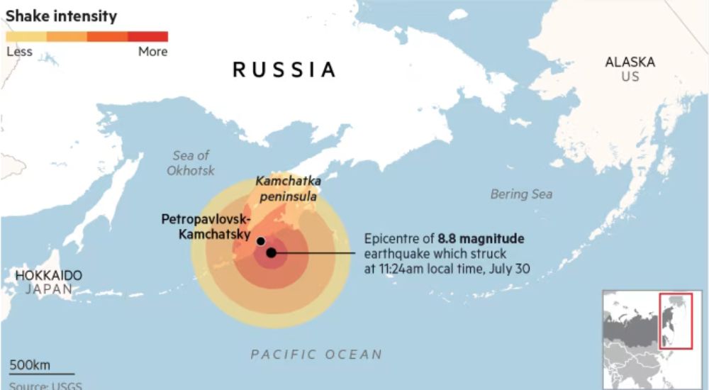 یکی از قویترین زلزلههای جهان اوایل چهارشنبه خاور دور روسیه را لرزاند، زلزلهای به بزرگی 8.8 ریشتر که باعث سونامی در منطقه شمال اقیانوس آرام شد و هشدارهایی را برای آلاسکا، هاوایی و سایر سواحل جنوبی به سمت نیوزیلند به همراه داشت. چندین مکان تخلیه را توصیه کردند، اما هیچ آسیب جدی گزارش نشده است.