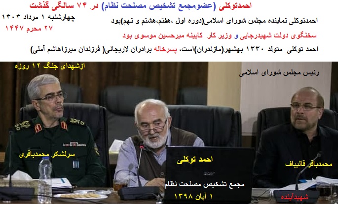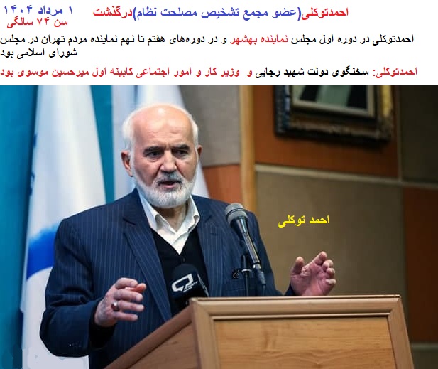 «درگذشت برادر مبارز مؤمن و صادق جناب آقای احمد توکلی» رحمةاللهعلیه را به خانوادهی گرامی و دوستان و همکاران ایشان تسلیت عرض میکنم. «تلاشهای صادقانهی این مجاهد فعال در مجلس و دولت و دیگر مراکز انقلاب برای آشنایان وی فراموش نشدنی است.»