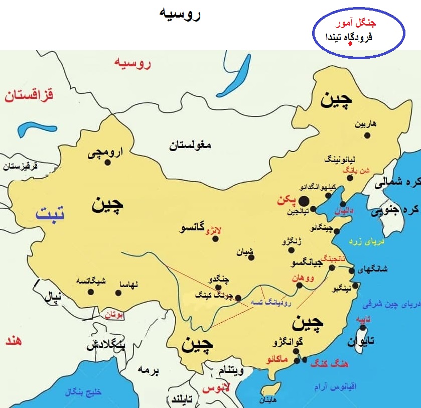 «محل سقوط هواپیمای روسیه »(هواپیمای آنتونوف An-۲۴)«جنگل آمور» روسیه ۱۵ کیلومتری فرودگاه تیندا(نقشه محل سقوط)