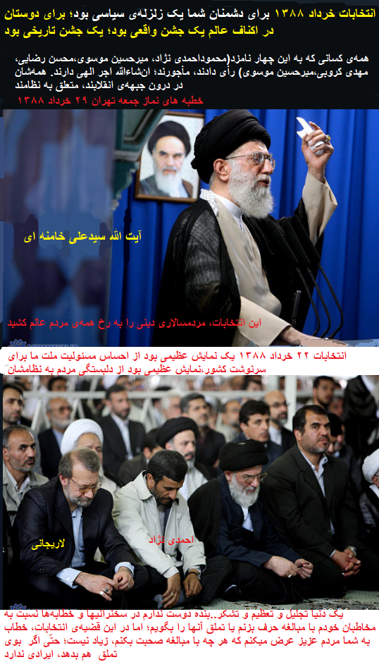 این دفاع محکم رهبری بود از حقوق و آراء مردم. یعنی رهبر انقلاب این بار در کسوت دفاع از آراء مردم و دفاع از جمهوریت وارد میدان شدند.