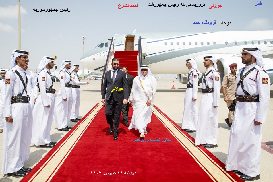 «احمدالشرع»(رئیس جمهور سوریه) و هیئت همراه پس از ورود به فرودگاه بینالمللی حمد، مورد استقبال «شیخ سعود بن عبدالرحمن بن حسن آل ثانی»(معاون نخست وزیر و وزیر مشاور در امور دفاع) و «دکتر بلال ترکیه»(کاردار سفارت جمهوری عربی سوریه در قطر) قرار گرفتند.